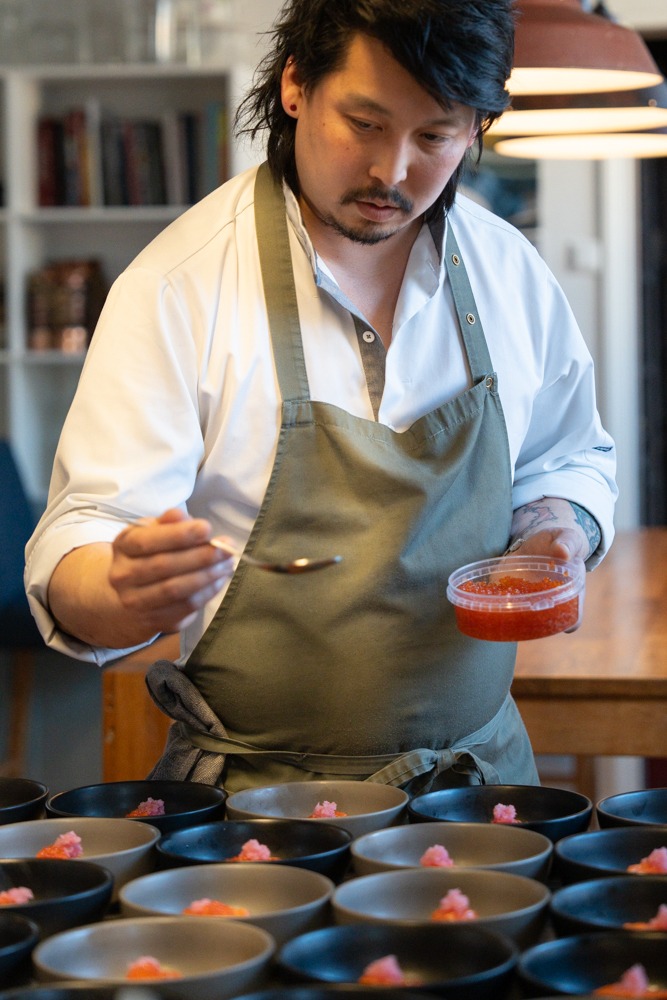 Kim ei ole sellega nõus. Ta viskab pilgu minu külmikusse, tõstab lauale kirsstomatid, värske kartuli, shimeji seened, šalottsibula, sidruni ja koore. Mõne aja pärast valmib roog, mis viib keele alla. Võib-olla kõige olulisem hetk saabub siis, kui Kim viib selle roa ise saali. Serveerib selle külalisele ja räägib lahti, mida ta on talle valmistanud sest seda rooga ei ole menüüs kirjas.
