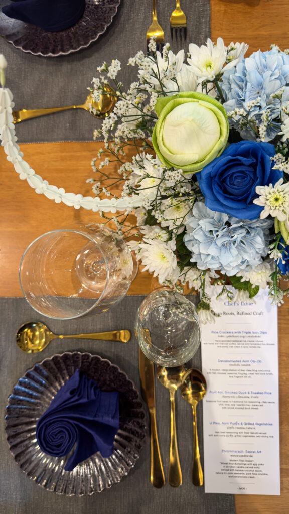 Selline tähelepanu detailidele, selline soov mõista ja austada külalise tausta, võtab sõnatuks. Neljakäigulise piduliku lõunasöögi tipphetkeks saab kergelt marineeritud ja medium rare küpsetatud veise välisfilee koos sini-must-valge sticky rice’iga.