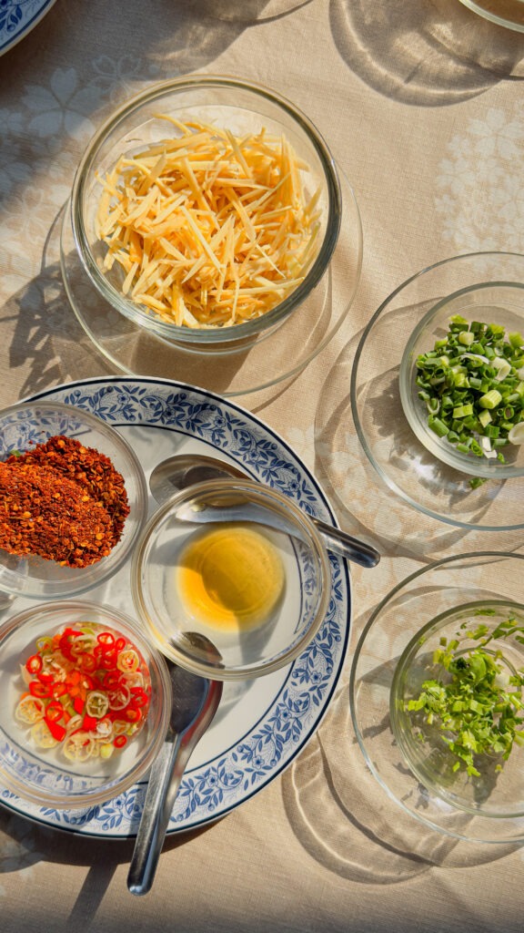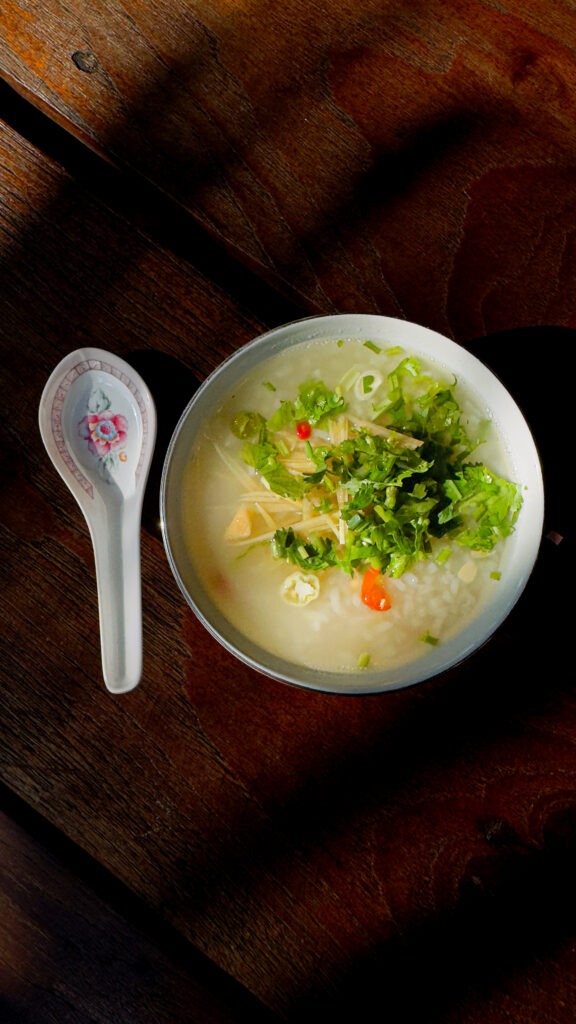 Igaüks saab oma hommikuse kausi ise lõpuni kujundada. Värskelt riivitud ingver toob mõnusa soojustunde, terav tšilli lisab ärksust ja aitab kuumas kliimas keha tasakaalus hoida. Hakitud koriander annab rohelise, värske nüansi, mõni tilk kalakastet süvendab maitset ja lisab umamist tulenevat sügavust. Kõige lõpuks pressitud laimimahl seob kõik kokku, tuues juurde kergelt hapuka tasakaalu, mis muudab kogu koosluse suurepärasesk elamuseks.