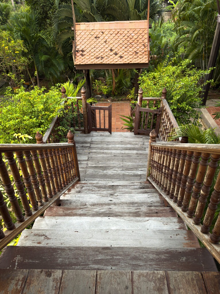 Sõidame paadiga linnast välja väiksesse külakesse, kus Taile nii omases tiigipuust nikerdatud detailidega maamajakeses ootab meid peretütar Pang koos oma kahe kaksikõega. Tai külalislahkus on teema, millest võiks terve peatüki kirjutada: rahulik, kiirustamata, Tais aeg tuleb, mitte ei lähe… Ülim tähelepanu külalisele, detailidele. “Elu ei ole vaja keeruliseks elada” on lause, mida Jensi suust päris mitu korda kuuleme.