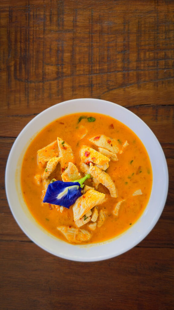 Kollase karriga kana tundub esmapilgul lihtne, tegelikult määravad detailid kõik. Just see hetk, kui õli hakkab pastast eralduma ja pinnale tõusma, on oluline lisada meelepärane proteiin: olgu selleks mahlane broileri kintsuliha või filee ning seejärel ülejäänud kookoskreem ja kookospiim. Edasi tuleb kõige olulisem osa: maitsete tasakaalustamine ehk teravuse ja happesuse timmimine kalakastme ja laimimahlaga, magususe lisamine palmisuhkru abil. Need väikesed nüansid muudavad roa heast suurepäraseks. Serveerin karrit aurutatud riisiga sest kohalike õpetajate sõnul ei sööda Tai karrit kunagi ilma riisita sest sel juhul on karri liiga intensiivne. Riis tasakaalustab ja loob maitsete harmoonia.