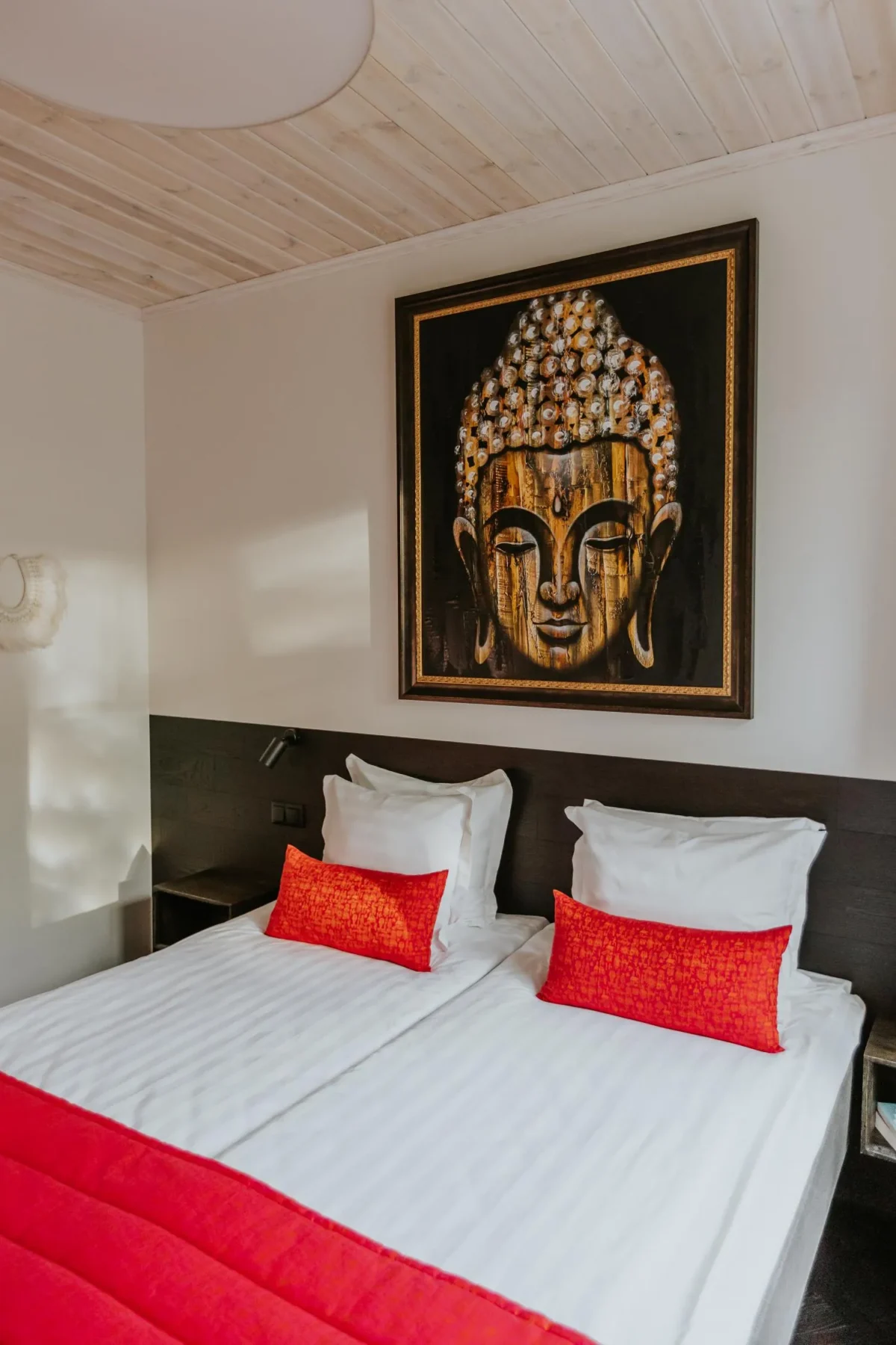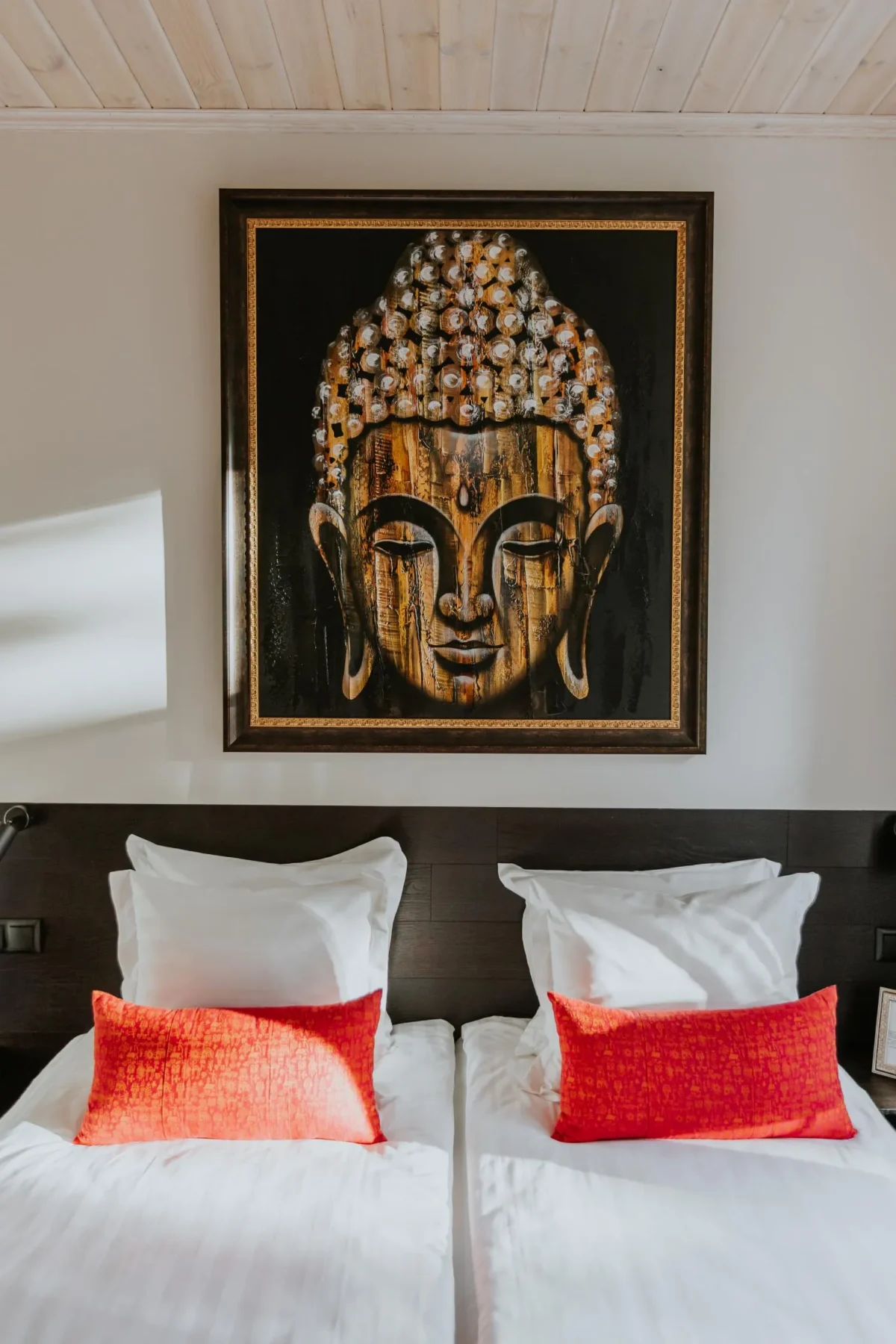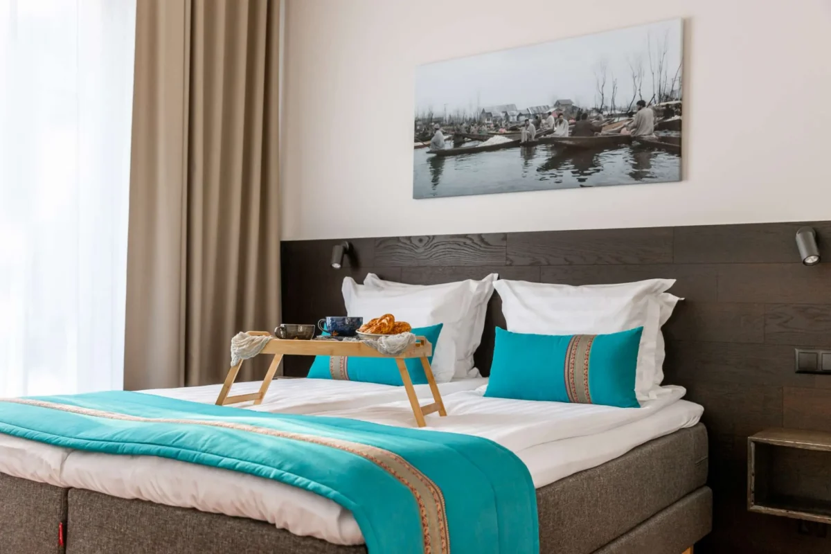 ndia, üks maailma värvikamaid riike, mille rikkalikud maitsed ja elurõõmsad inimesed on paljudele inspiratsiooniks, on andnud põhjuse Old Hapsal Hoteli ainulaadsele kahetoalisele apartement-sviidile. Magamistoas ootab sind mugav Sleepwell voodi (160 × 200 cm), pimendavad kardinad ja detailid, mis loovad ehtsa India stiilis atmosfääri. Eestoa seintel on arhitekt ja fotograaf Viren Pawari jäädvustused värvide festivalilt Dream Holi, magamistoas aga perenaine Daire foto Dal Lake’i järve turukauplejatest.