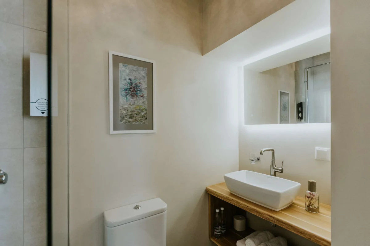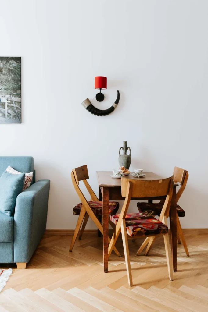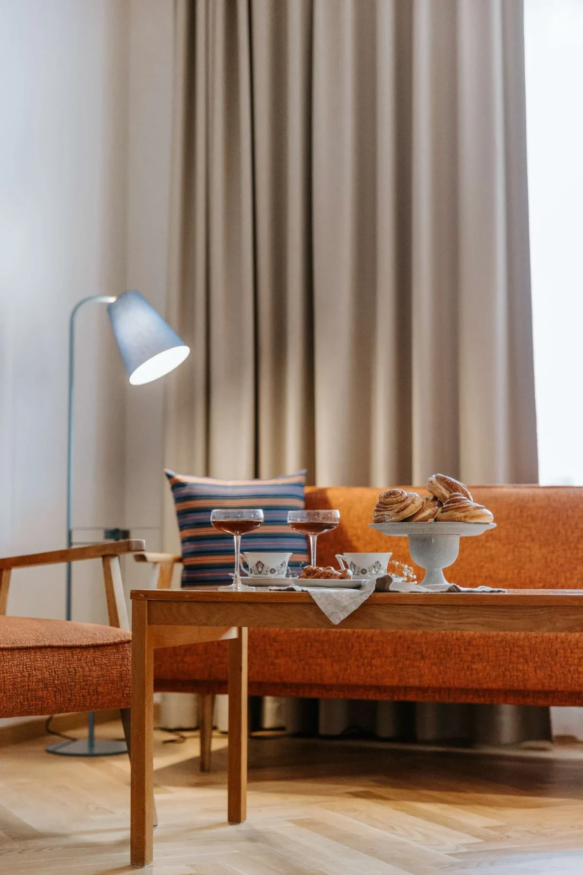 Eestoas on kööginurk koos pliidi, külmiku ja nõudega, lisaks minibaar. Samuti on toas väike televiisor, mugav istumisnurk ja diivanvoodi kahele külalisele. Interjööris on kasutatud unikaalseid mööbliesemeid, millele Eesti käsitöömeistrid on andnud uue elu.