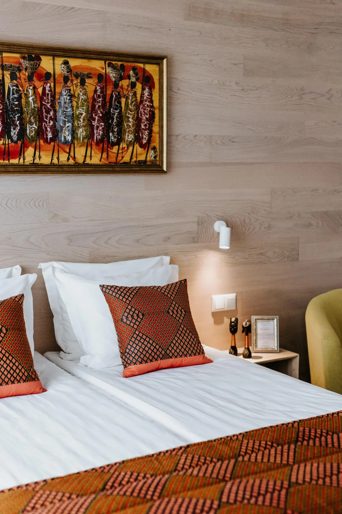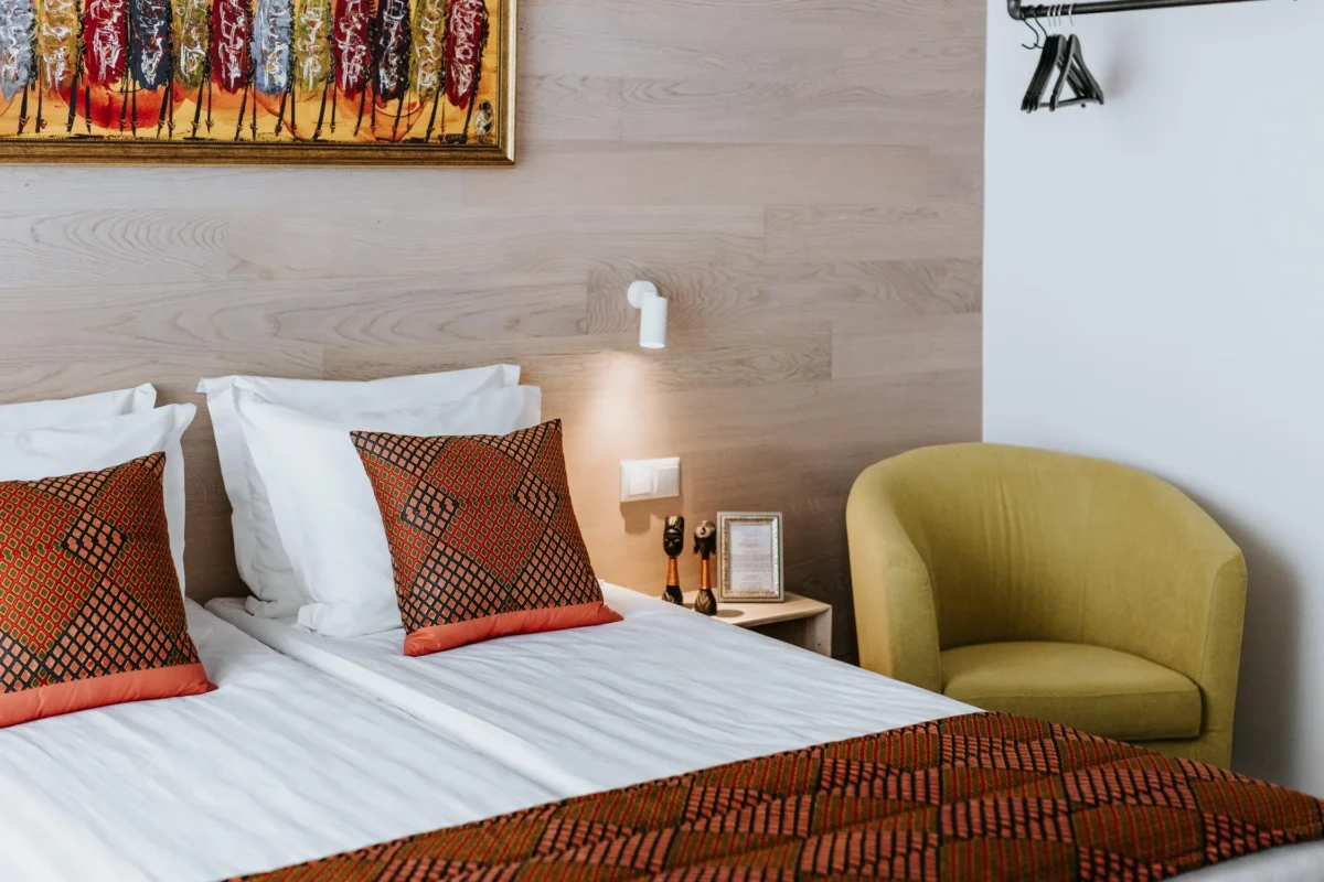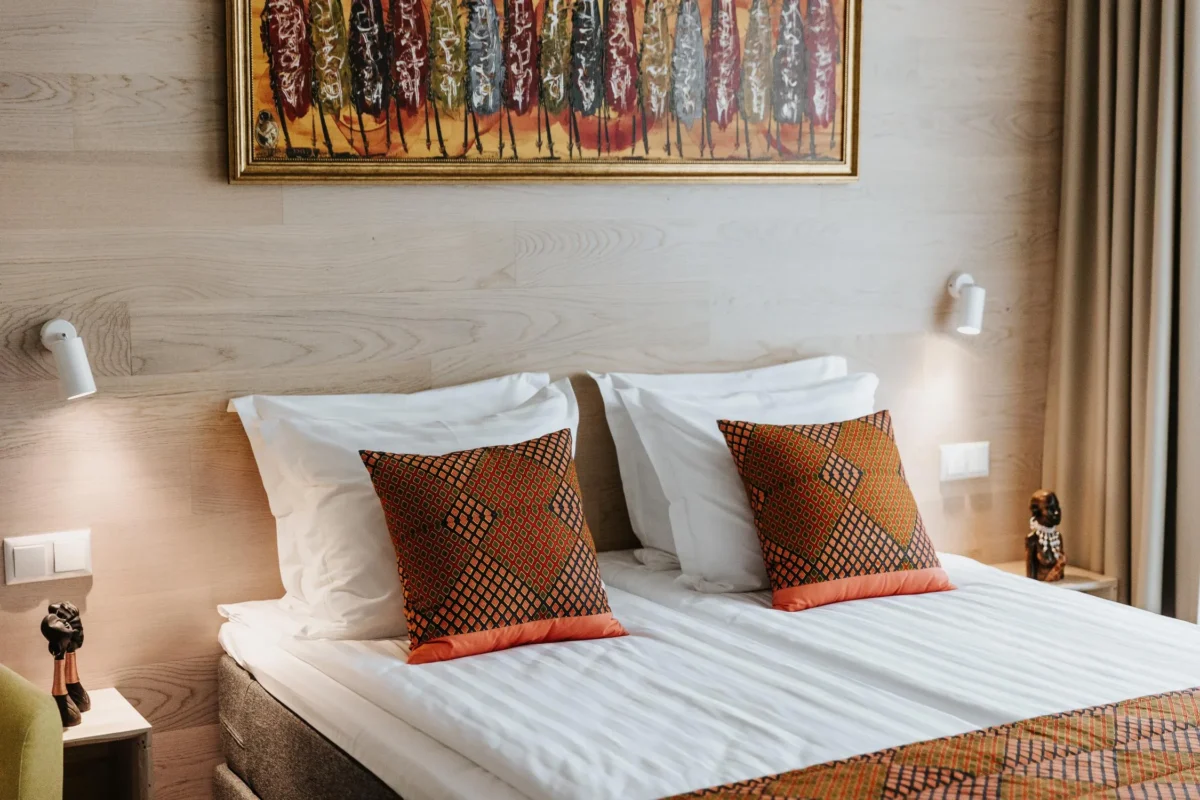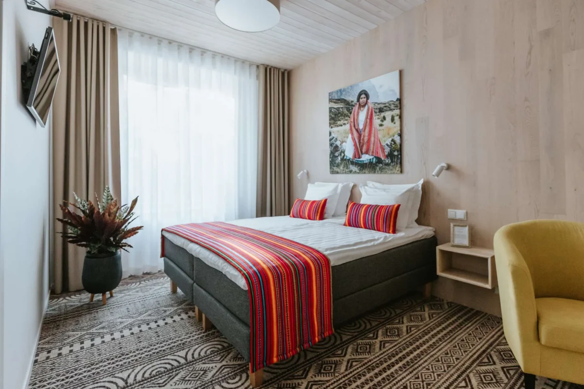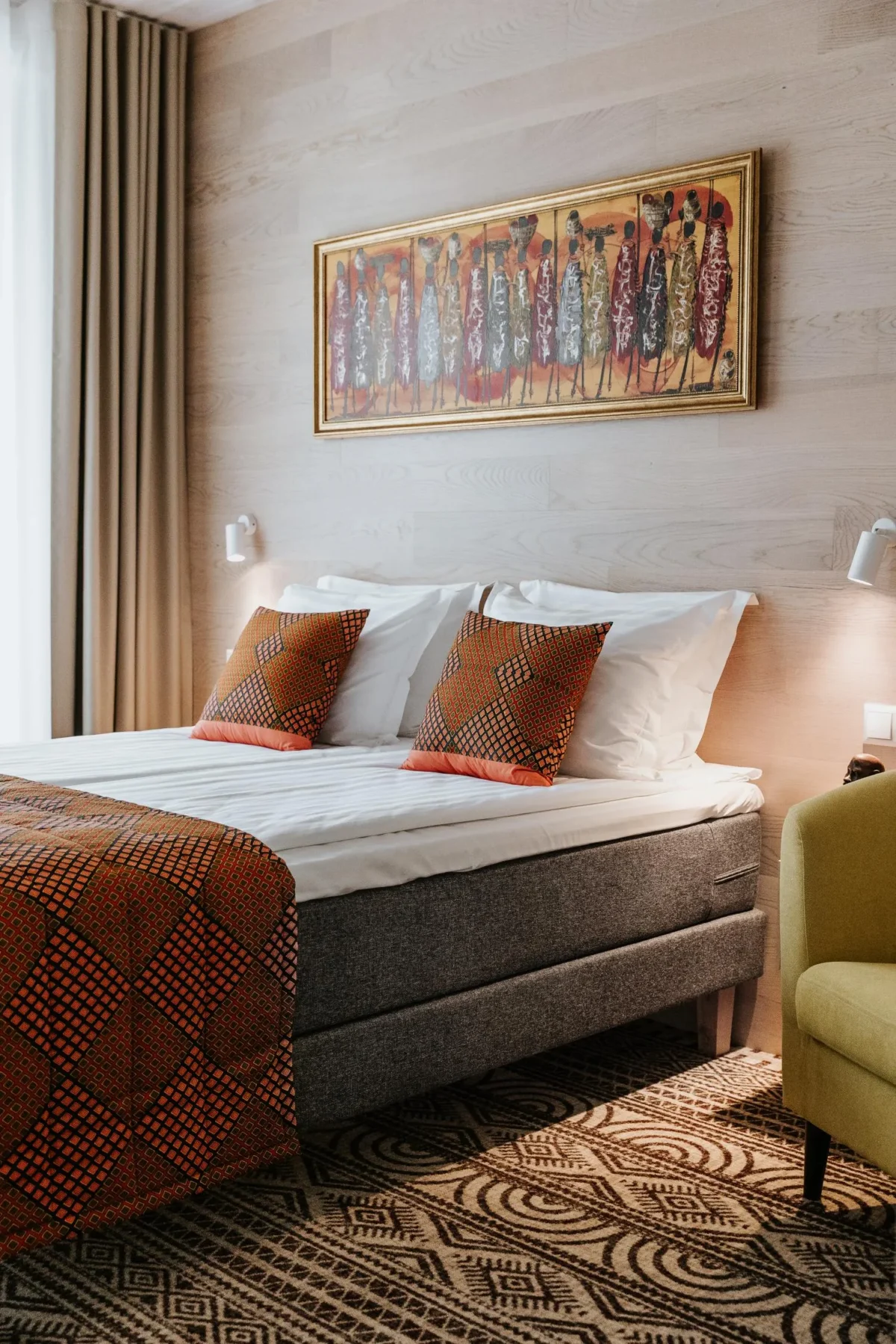 Sviit Eesti on meie hotelli romantiline pärl ja paljude pulmapaaride lemmik. Soojades toonides interjöör, rahvuslikud mustrid ja tammepuidust kalasaba-parkett loovad meeleolu, mis on korraga hubane ja väärikas. Seintel kohtad Eesti kunstnike töid – neis on midagi, mis puudutab igat külastajat omal moel.
